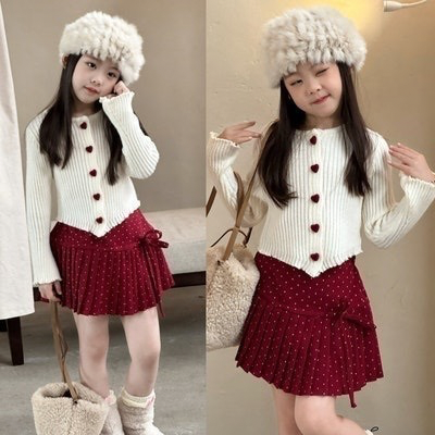 - [빠른수입] 하트가디건레드치마셋