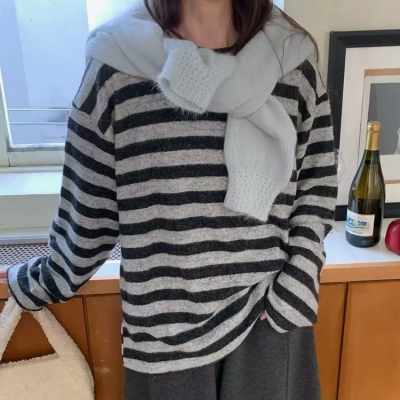 on.[NT699]스트라이프루즈핏니트
